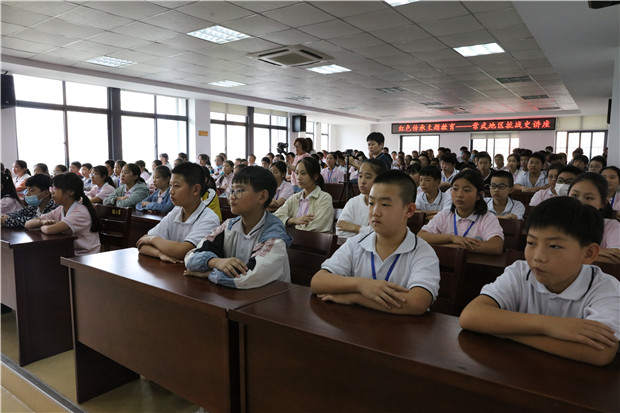 为培育和践行社会主义核心价值观,深化爱国主义教育,提高学生爱国爱家的意识信念,9月16日,正值九一八事件纪念日来临之际,新桥初级中学邀请常州市新四军历史研究会特约研究员、常州市退役军人红色文化宣讲员、原中学校长钱永彪校长在302阶梯教室为新桥初中七年级学生宣讲常武地区抗战史。